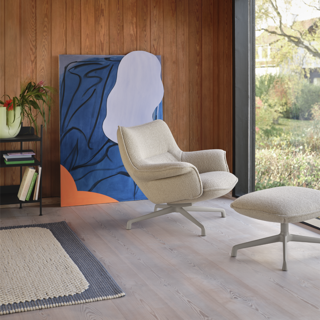 Deze Doze fauteuil is onderdeel van de Doze -collectie, ontworpen door het Noorse ontwerp duo Anderssen & Voll voor het merk Muuto . Deze collectie lijn combineert Scandinavisch design met een knipoog naar de jaren 1970.