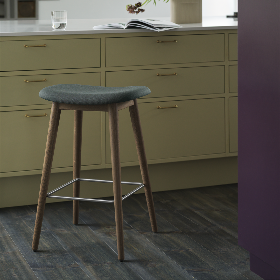 Deze barkruk van Muuto is comfortabel door de licht gebogen zitting ook de lijkt het bijna of deze zweeft in de ruimt door de minimale dikte van de zitting de footrest geeft extra comfort en steun. De bar kruk is er in twee hoogtes en met of zonder rugleuning.en is in drie verschillende martiale te verkrijgen: fiber, leer of gestoffeerd.Een ontwerp van Iskos-Berlin Studio voor Muuto.