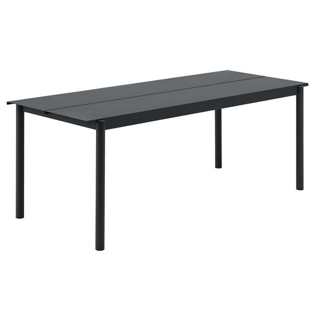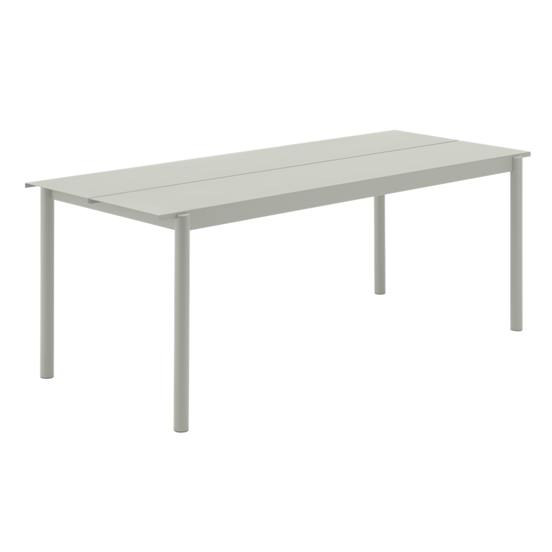 De minimalistische Muuto Linear Steel tafel uit de Linear Steel Outdoor collectie van Thomas Bentzen is elegant en praktisch en geeft je buitenruimte extra moderniteit.