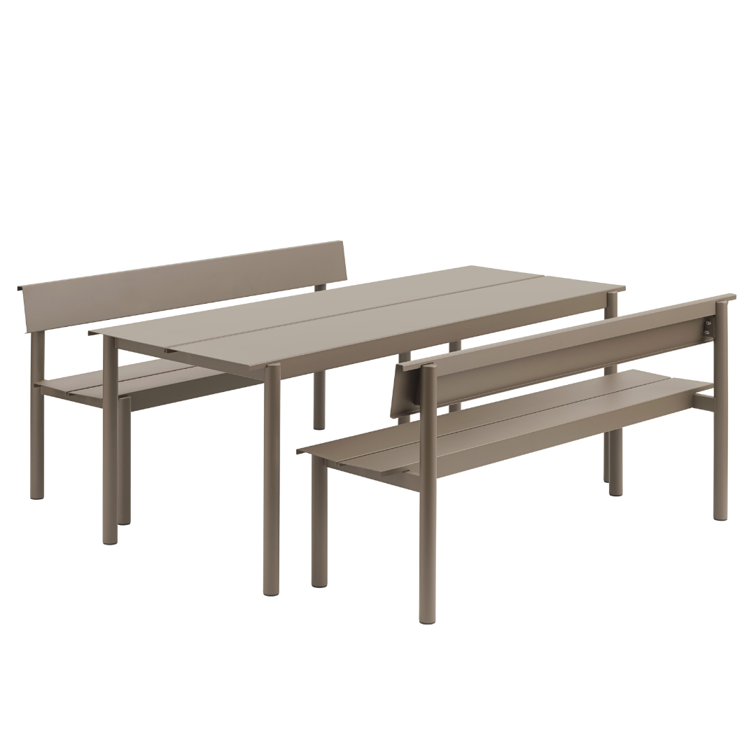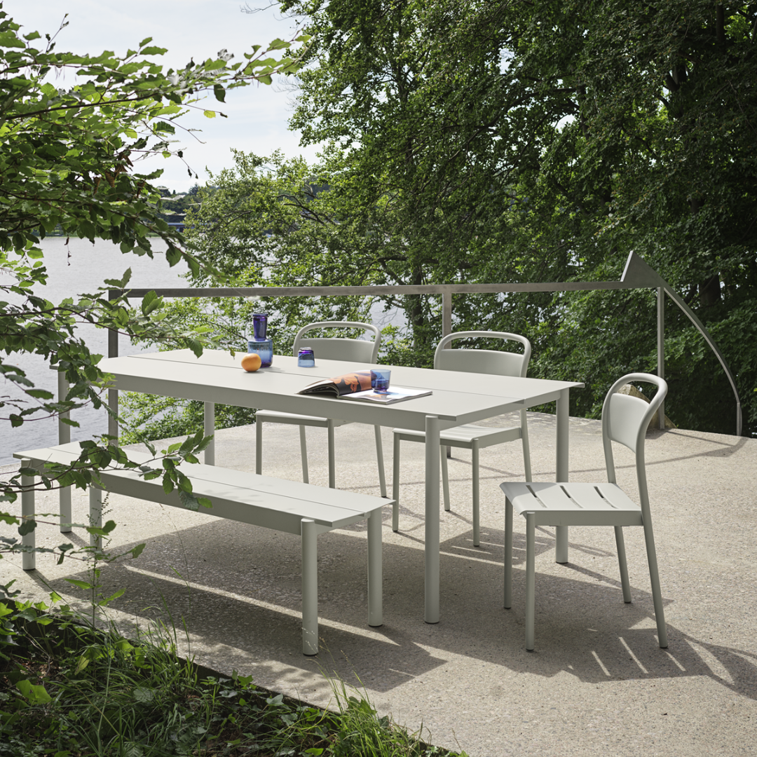 De minimalistische Muuto Linear Steel tafel uit de Linear Steel Outdoor collectie van Thomas Bentzen is elegant en praktisch en geeft je buitenruimte extra moderniteit.