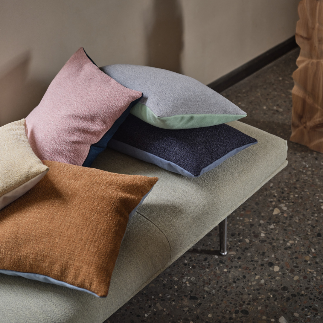 Mingle Cushion is een stuk waar contrasten harmoniseren in een meeslepende vermenging van kleur en materialen. Gebruik het voor of achter, afhankelijk van de uitdrukking waarmee je wilt spelen - gestructureerd of glad. Mingle Cushion is verkrijgbaar in twee maten en 8 kleurvarianten, ideaal om te mixen en matchen.
