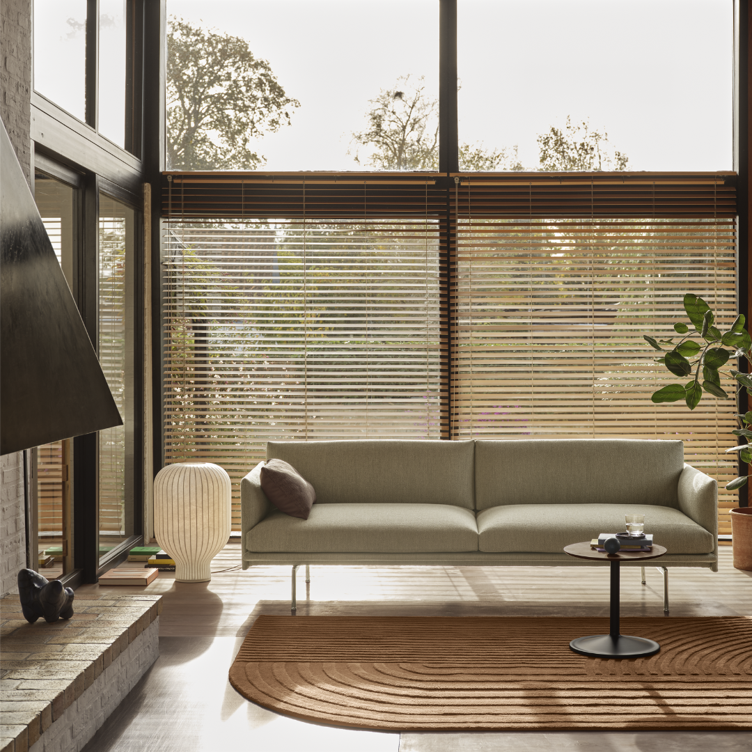 De Outline-serie voegt nieuwe perspectieven toe aan de klassieke Scandinavische designbanken uit de jaren 60 en combineert de idealen van toen zoals eenvoud en functie in één. Omdat het ontwerp zijn naam ontleent aan de sterke contouren van een bank, is de Outline-serie aan de buitenkant rank en zijn de kussens zacht en vriendelijk aan de binnenkant.