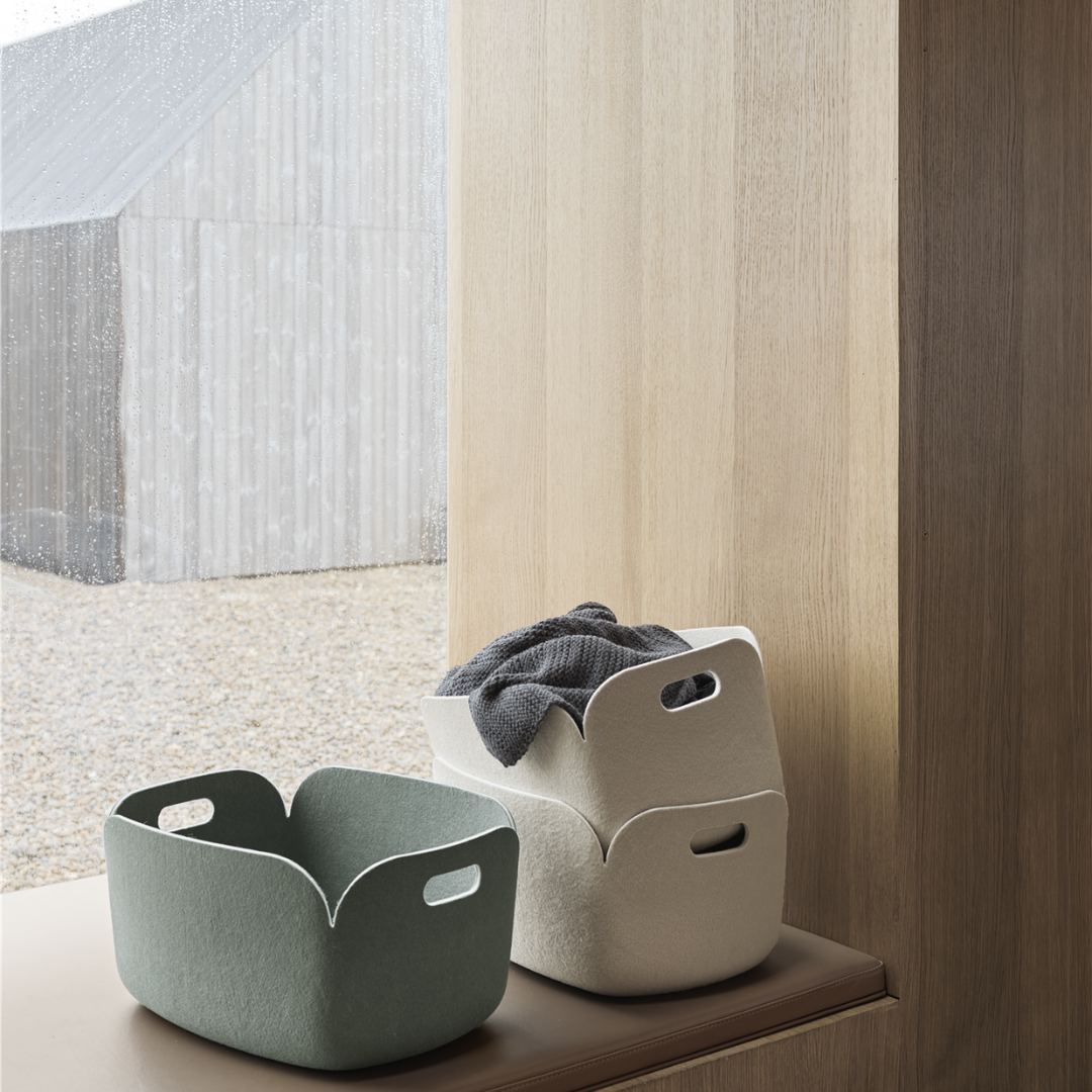 De Muuto Restore Mand van designer Mika Tolvanen is een handzame en functionele opbergmand. Het ontwerp is geschikt voor het opbergen van kranten, tijdschriften, speelgoed cd's lp's en overige artikelen.