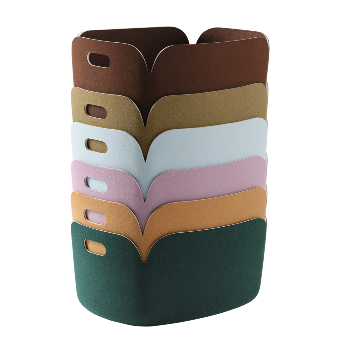 Deze kleine mand met 2 draag/handvatten is gemakkelijk te verplaatsen en verkrijgbaar in heel veel mooie kleuren. De moderne Restore mand is vervaardigd uit een hoogwaardige kwaliteit polymeer-vilt en dit garandeert een lange levensduur.