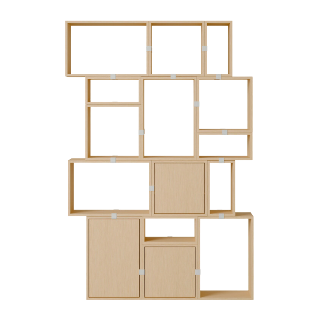 Omdat het zowel veelzijdig als functioneel is, kan het gestapelde opslagsysteem worden gerangschikt en herschikt voor de exacte esthetische en functionele behoeften van elke ruimte. Een vooraf ontworpen dressoir kast configuratie die moderne opslag biedt aan elk huis, elke werkplek of elke horeca omgeving. Alle modules met achterbord kunnen rechtstreeks op de muur worden gemonteerd.