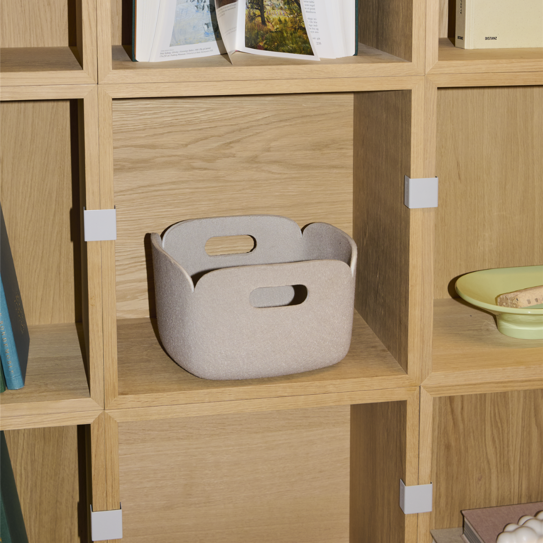 Stacked 2.0 is een verbeterde versie van Muuto's populaire Stacked collectie en wordt in Europa geproduceerd. In de Stacked 2.0-units is het essenfineer vervangen door eiken en de grijze kleur komt in een warmere toon dan voorheen. Andere kleuren kunnen licht afwijken van de vorige collectie.