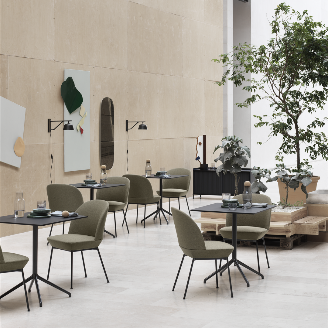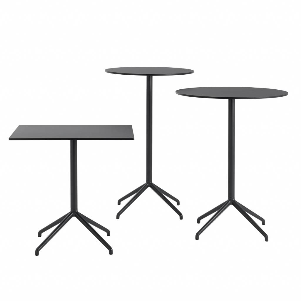 Muuto's Still Café-bartafels zijn, zoals hun naam al doet vermoeden, ontworpen voor gebruik in bars en restaurants, maar de slanke en verfijnde tafels passen uitstekend in verschillende omgevingen, van huishoudelijke keukens tot kantoor- en conferentieomgevingen. De Still Café-tafel, heeft een robuust vier poten aluminium onderstel en een gemakkelijk te reinigen tafelblad van nano laminaat.
