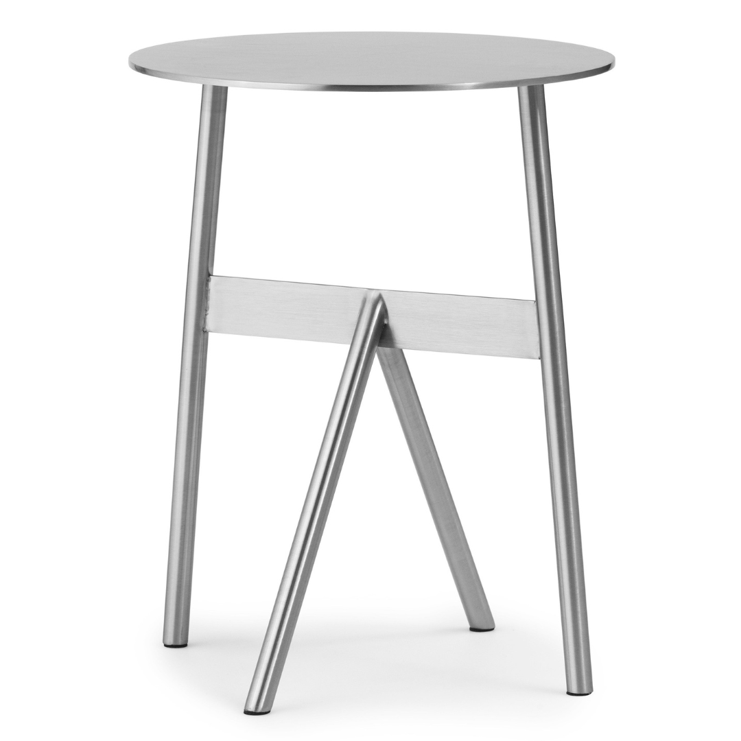 De Stock-tafel van MSDS Studio voor Normann Copenhagen is een samenstelling die gebaseerd is op eenvoudige geometrische metalen vormen.