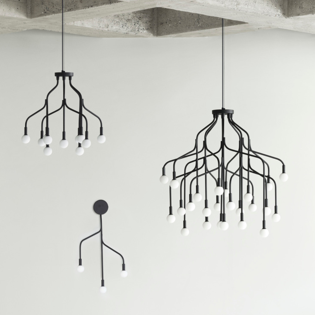 Aan het uiteinde van elke arm bloeien gloeilampen, toppen van opaalglas werpen zacht licht over uw interieur. Legald's beheersing van de minimalist komt tot uiting in de opvallende elegante esthetiek van de lamp, die een prachtig stuk hedendaags design oplevert met een uitgesproken organische draai.