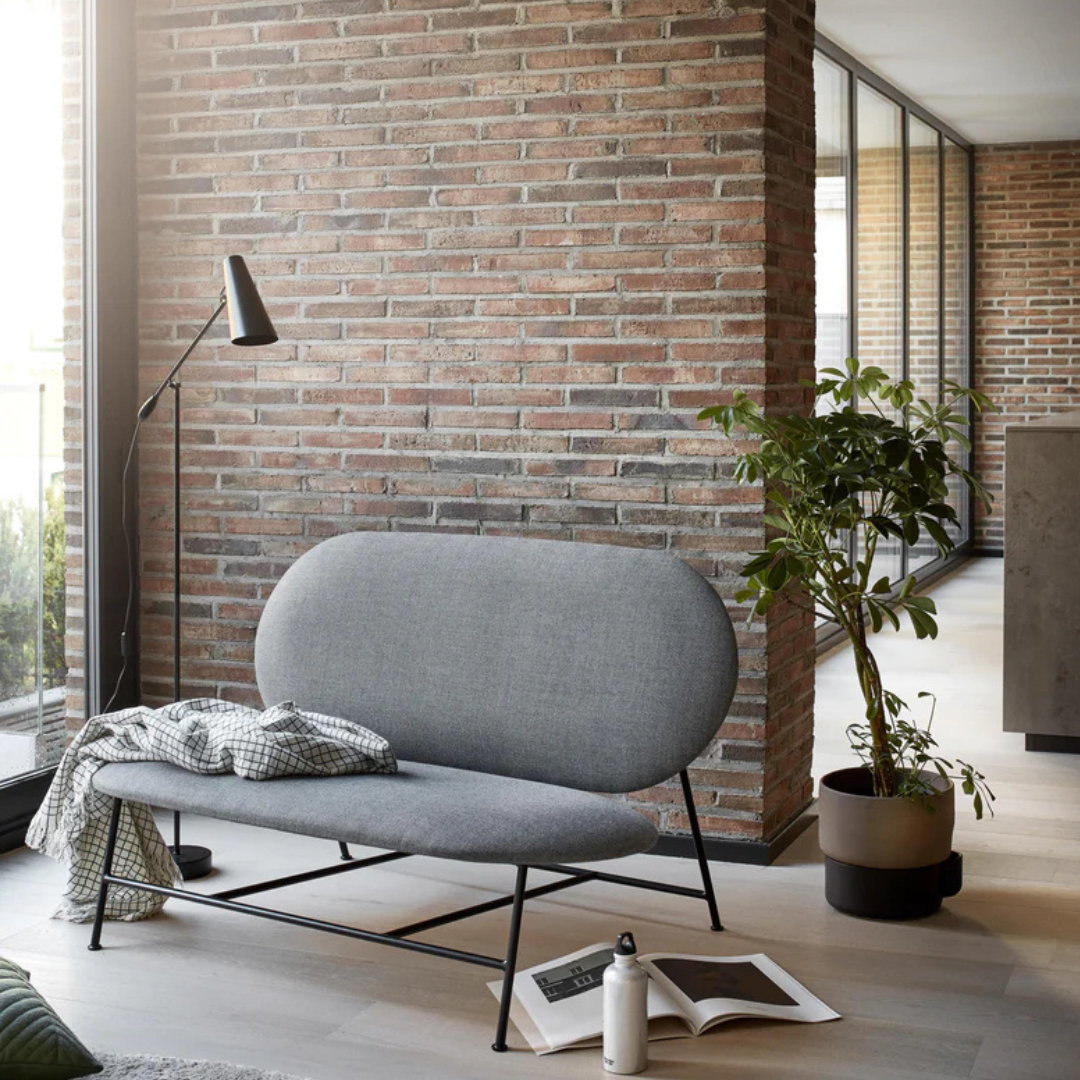 De bank is ontworpen met een open basis waardoor licht erdoorheen komt, waardoor Oblong de ruimte kan vullen zonder deze te lijken te verdringen. Hoewel licht en comfortabel, vormt het frame van de bank een stabiele basis die het stevig op zijn plaats houdt.