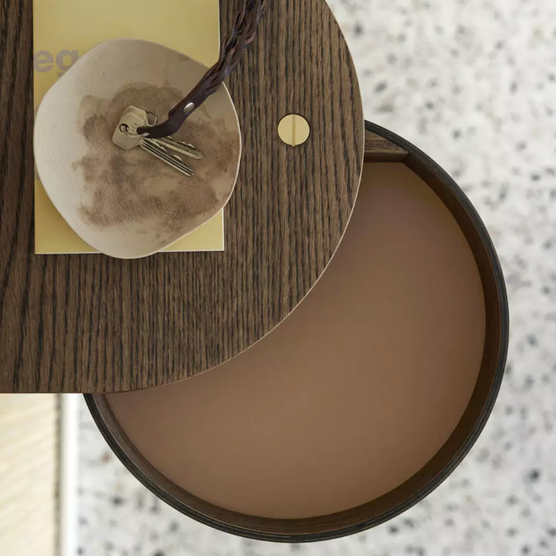 Hoewel de Valet wandtafel met lade is gestript tot het meest minimalistische uiterlijk, is de hoeveelheid opbergruimte gemaximaliseerd. Onder het eikenhouten tafelblad vind je een mooie ronde lade waarin je alle essentiële kleine voorwerpen en andere kostbaarheden kunt opbergen.