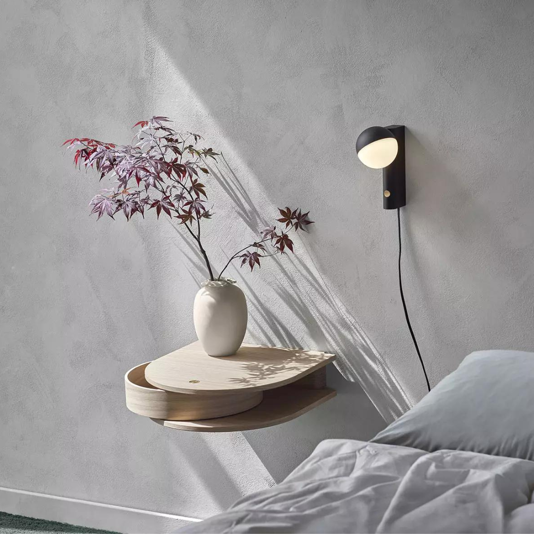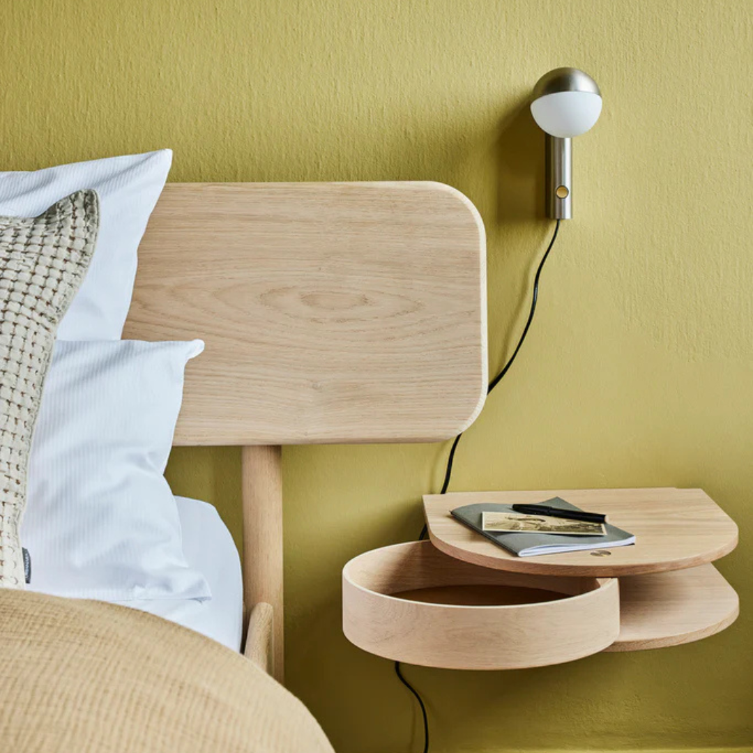 De Valet wandlade van Northern brengt op een charmante manier extra ruimte in zelfs de kleinste kamers. De gebogen lade lijkt in de lucht te zweven; de wandplank kan op elke gewenste hoogte worden gehangen, waardoor u het gebruik ervan naar wens kunt aanpassen.