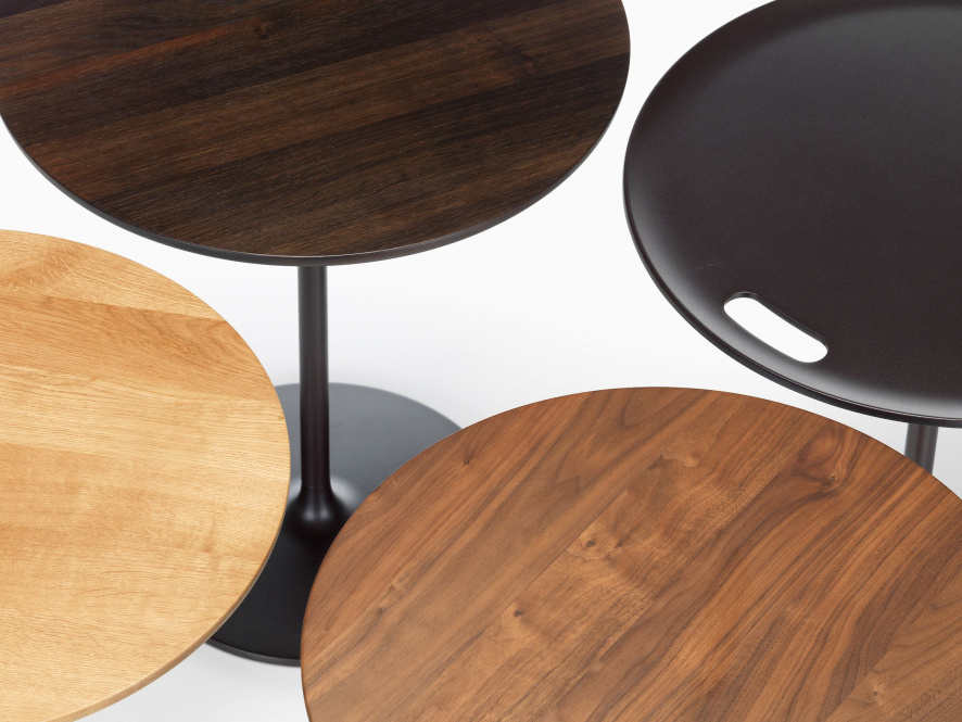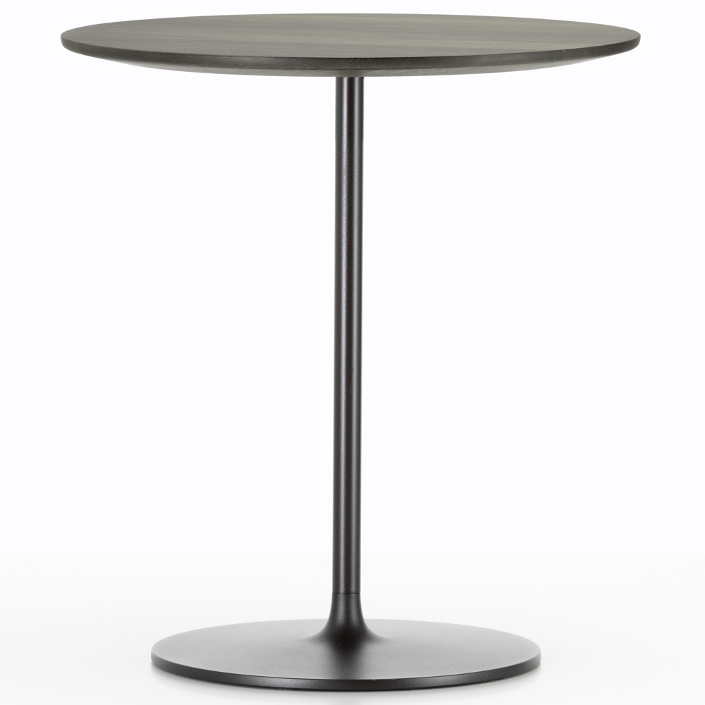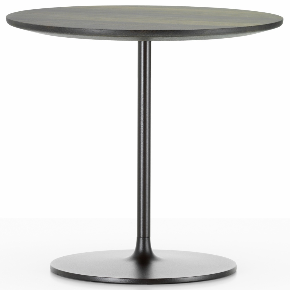 De tafelbladen van de Occasional Low bijzettafel 35 van Vitra zijn verkrijgbaar in 4 verschillende uitvoeringen.aluminium met een chocoladebruine coating, massief geolied naturel eiken, massief geolied gerookt eiken of massief geolied Amerikaans notenhout.