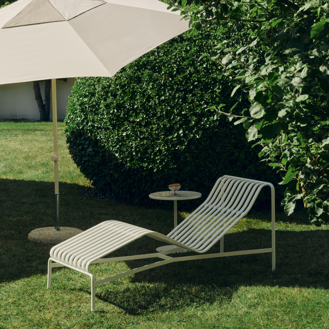 De slanke maar robuuste Palissade-ligbed maakt deel uit van Hay's veelzijdige collectie tuinmeubilair. Palissade tuinmeubilair heeft een sterk, grafisch ontwerp dat bestaat uit eenvoudige stalen buizen en lamellen.
