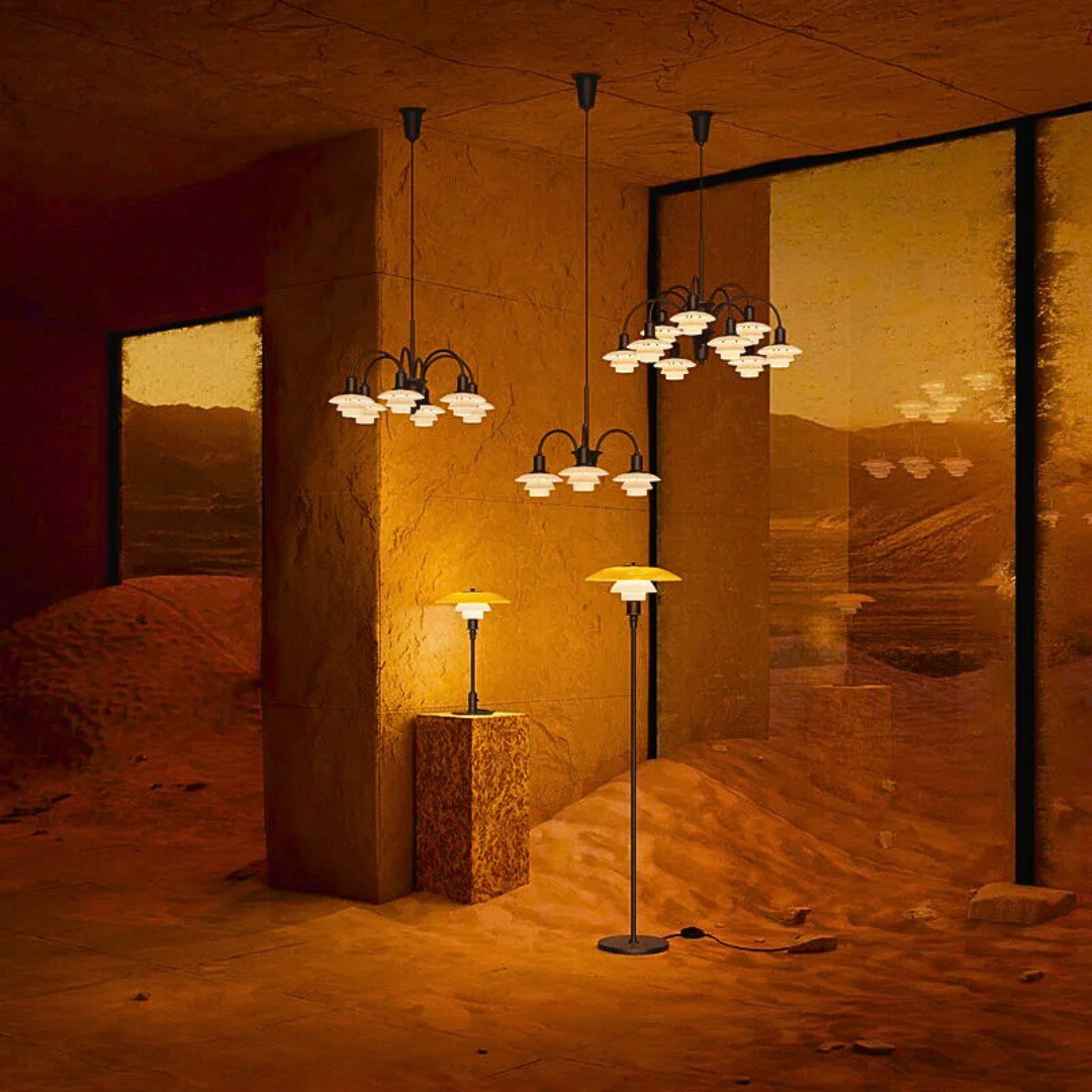 Het ontwerp is gebaseerd op Henningsens revolutionaire drie-schermen-systeem, dat het licht gelijkmatig verspreidt en hinderlijke verblinding voorkomt. De opaalglazen kappen met gezandstraalde binnenzijde zorgen voor een zachte, warme gloed die de ruimte op subtiele wijze verlicht. Hierdoor ontstaat een aangename sfeer in eetkamers, woonkamers of entreehallen.
