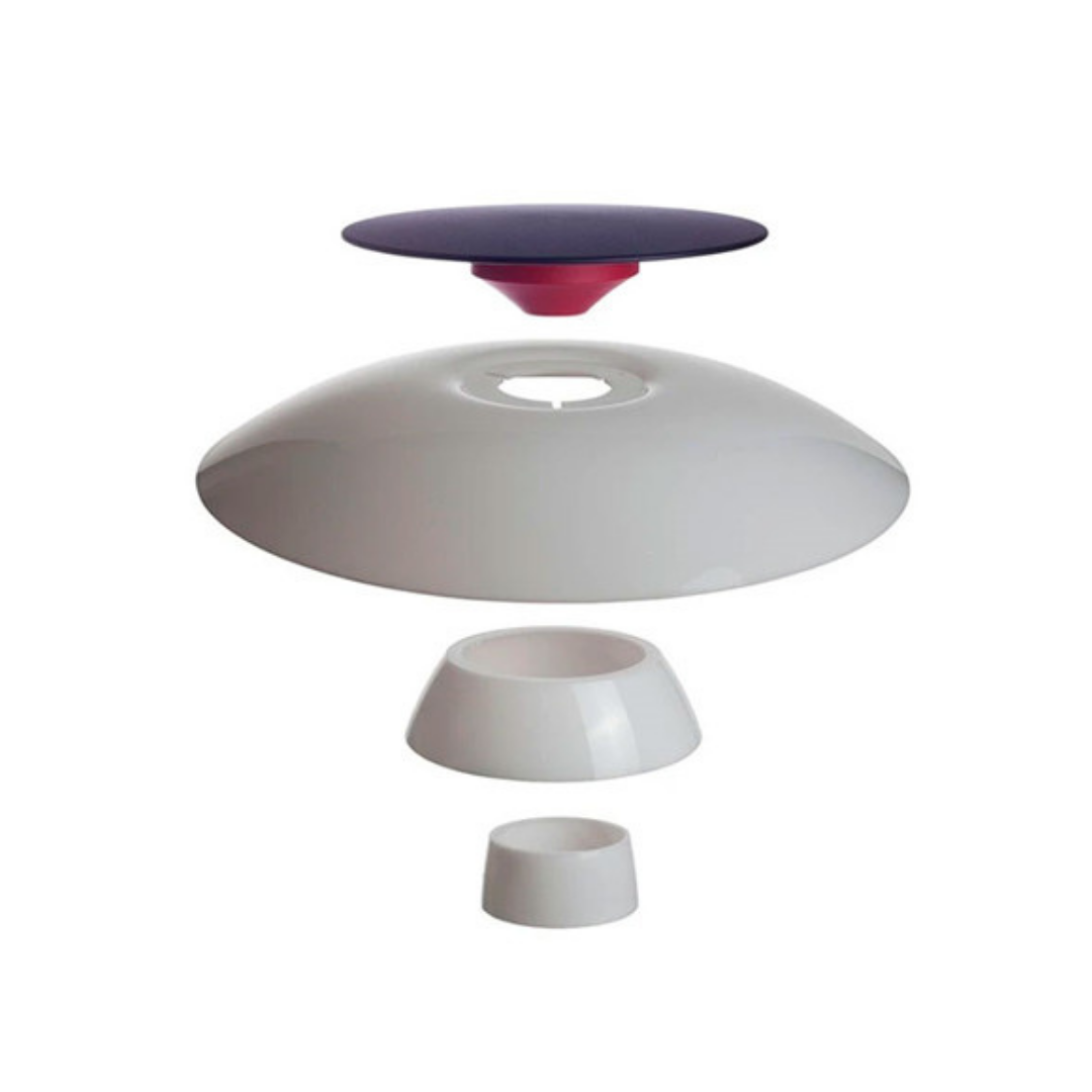 PS:Aan de voet zit een plastic snoer bevestigd, waarin een aan-/uitschakelaar zit verwerkt; de witte en zwarte uitvoeringen zijn ook verkrijgbaar met een snoer-dimmer.
