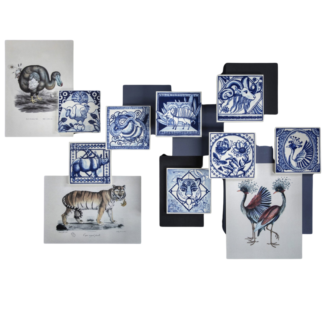 Elke tegel toont een uitgestorven diersoort in fijn Delfts Blauw en samen vormen ze een indrukwekkende en kunstzinnige verzameling. Een ode aan vergane schoonheid, vastgelegd in traditioneel vakmanschap en tijdloos design.