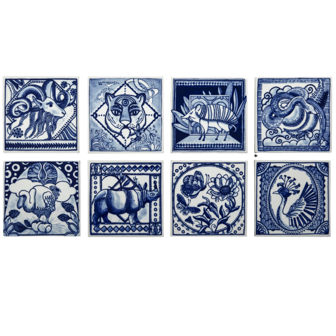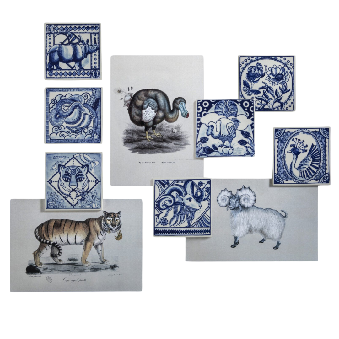 Elke tegel toont een uitgestorven diersoort in fijn Delfts Blauw en samen vormen ze een indrukwekkende en kunstzinnige verzameling. Een ode aan vergane schoonheid, vastgelegd in traditioneel vakmanschap en tijdloos design.