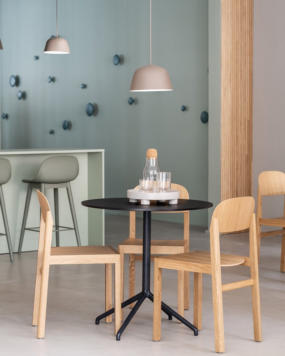 Muuto's Still Café-bartafels zijn, zoals hun naam al doet vermoeden, ontworpen voor gebruik in bars en restaurants, maar de slanke en verfijnde tafels passen uitstekend in verschillende omgevingen, van huishoudelijke keukens tot kantoor- en conferentieomgevingen. De Still Café-tafel, heeft een robuust vier poten van aluminium onderstel en een gemakkelijk te reinigen tafelblad van nano laminaat.