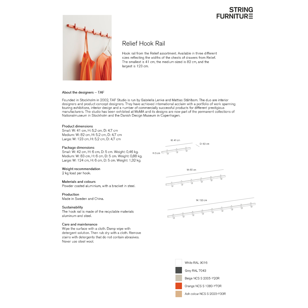 De Relief kapstok van String Furniture organiseert moeiteloos uw jassen, hoeden, tassen en andere benodigdheden in de gang of hal, ook kan deze dienst doen in de badkamer voor uw handdoeken, badjassen ed.