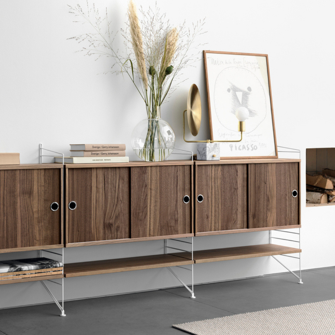 Afmetingen String dressoir: Diepte 30 - Hoogte 85 - Breed 240 cm.