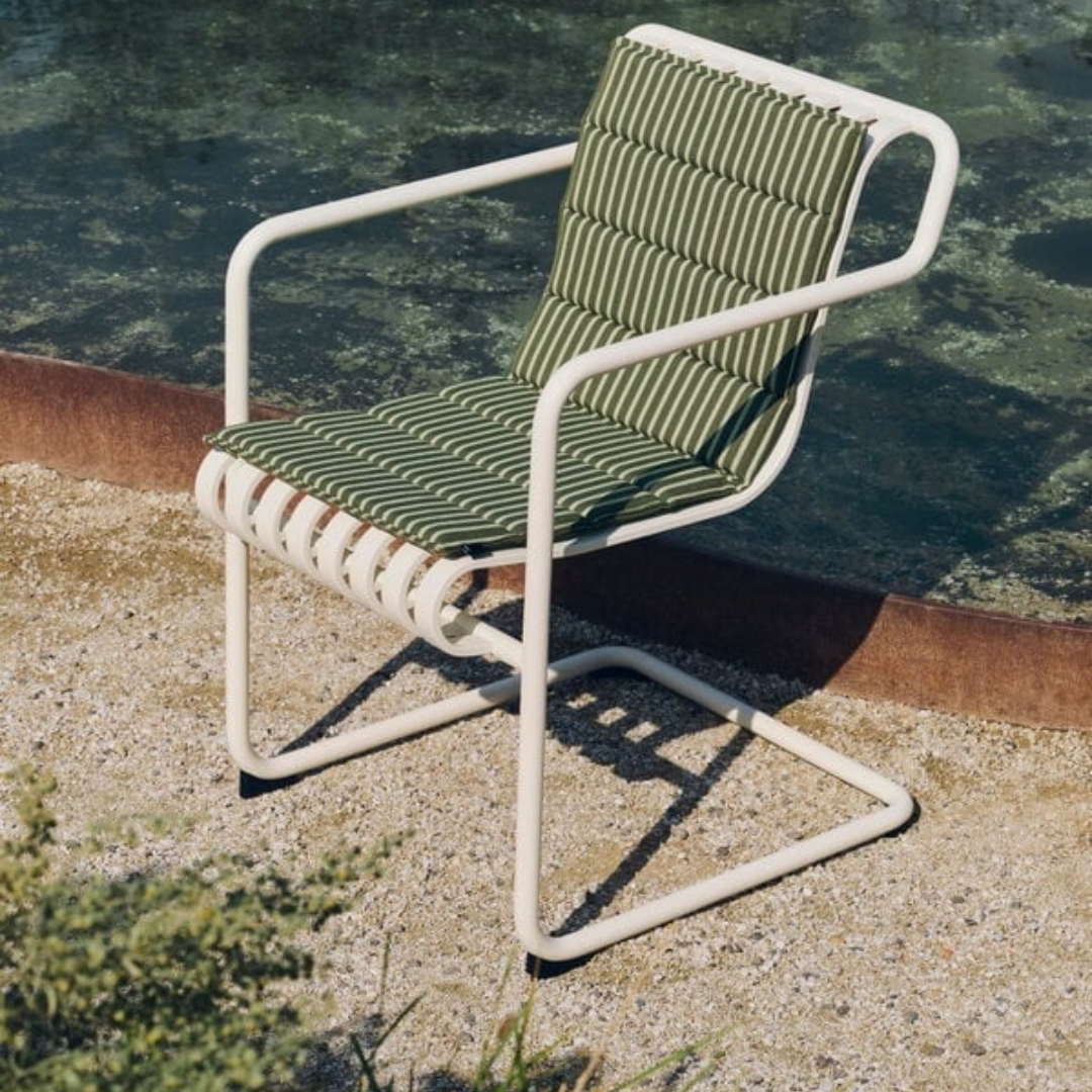 Het zitkussen is vervaardigd uit 100% gerecycled polyester en gevuld met comfortabel polyurethaanschuim. De zachte maar veerkrachtige vulling zorgt voor aangenaam zitcomfort, terwijl de duurzame stof bestand is tegen dagelijks gebruik buitenshuis. Met zijn slanke profiel sluit Terrazza perfect aan bij de iconische Palissade-collectie, maar combineert het moeiteloos met andere outdoorfavorieten van HAY.