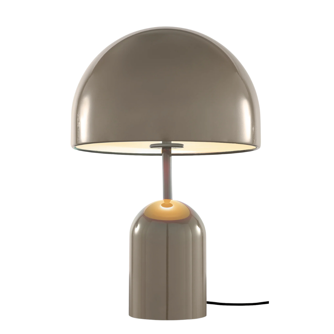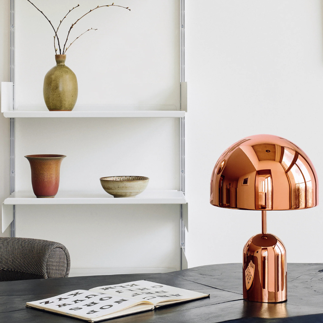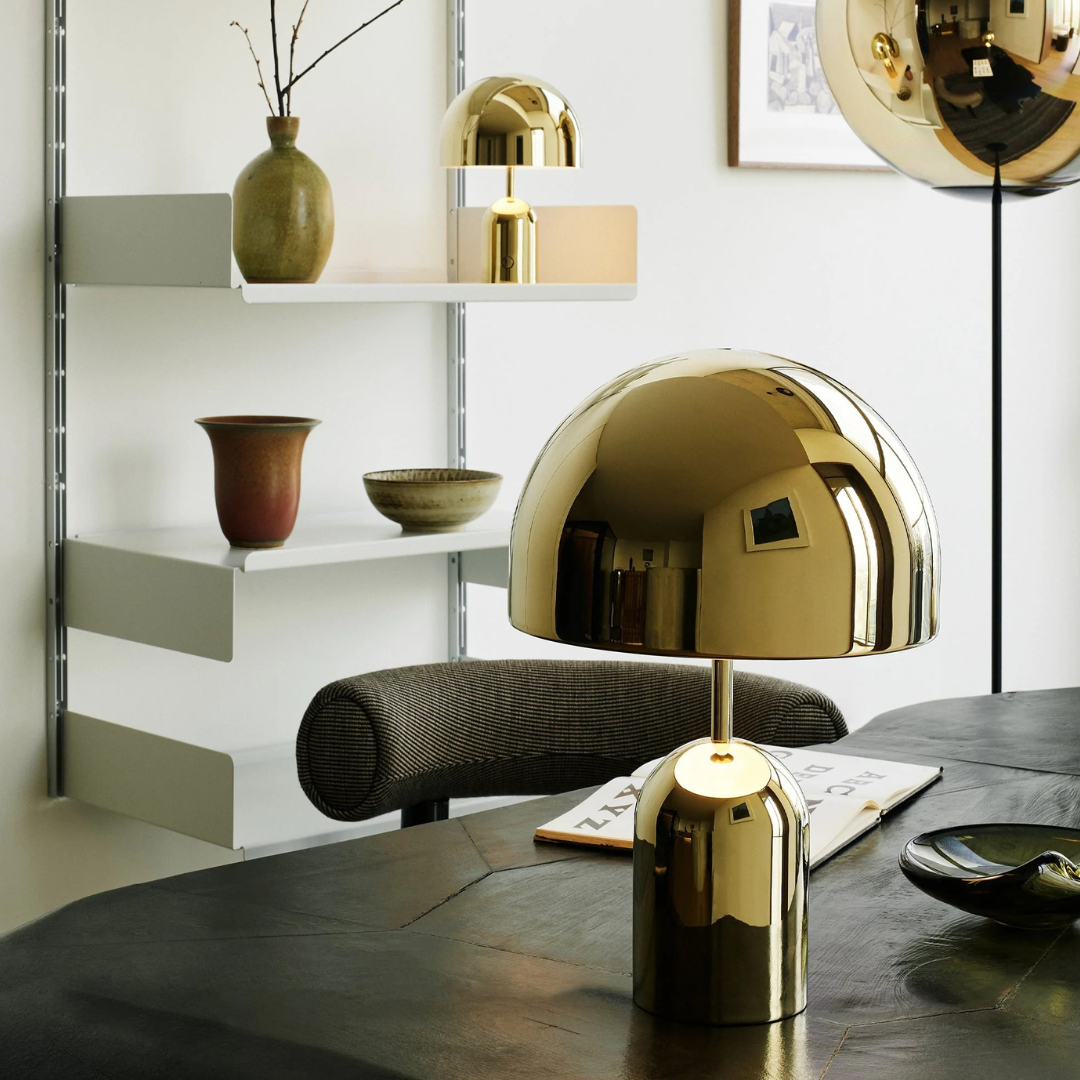 Deze goudkleurige tafel design lamp is een perfect voorbeeld van minimalisme.