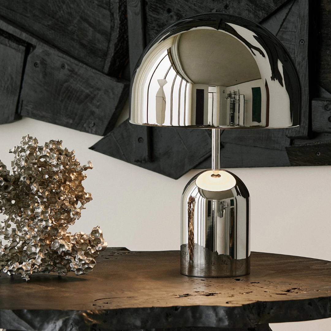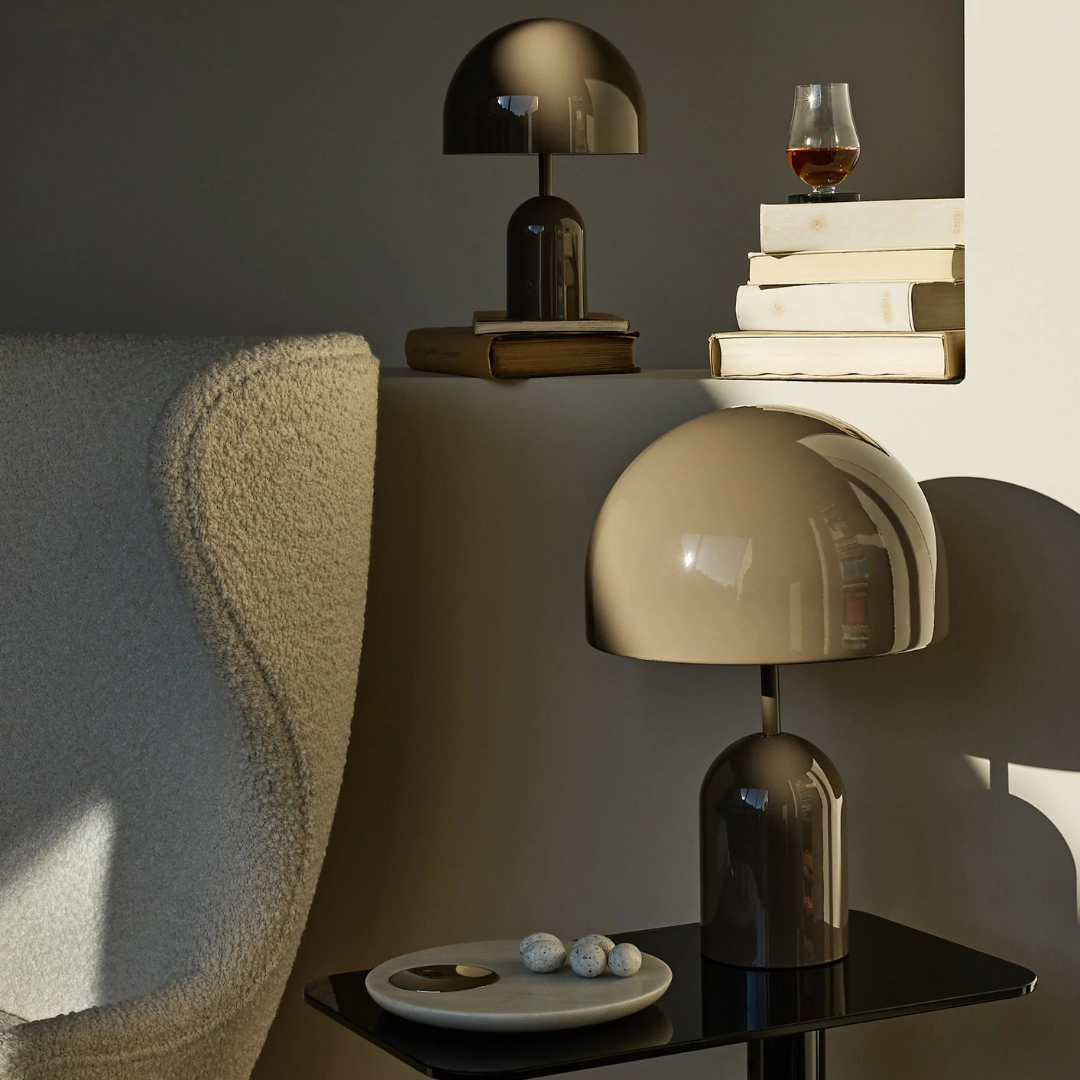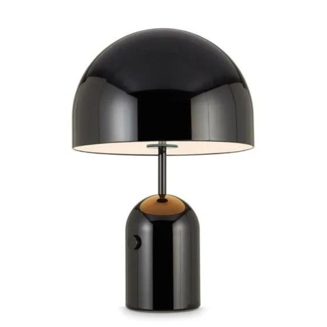 Deze goudkleurige tafel design lamp is een perfect voorbeeld van minimalisme.