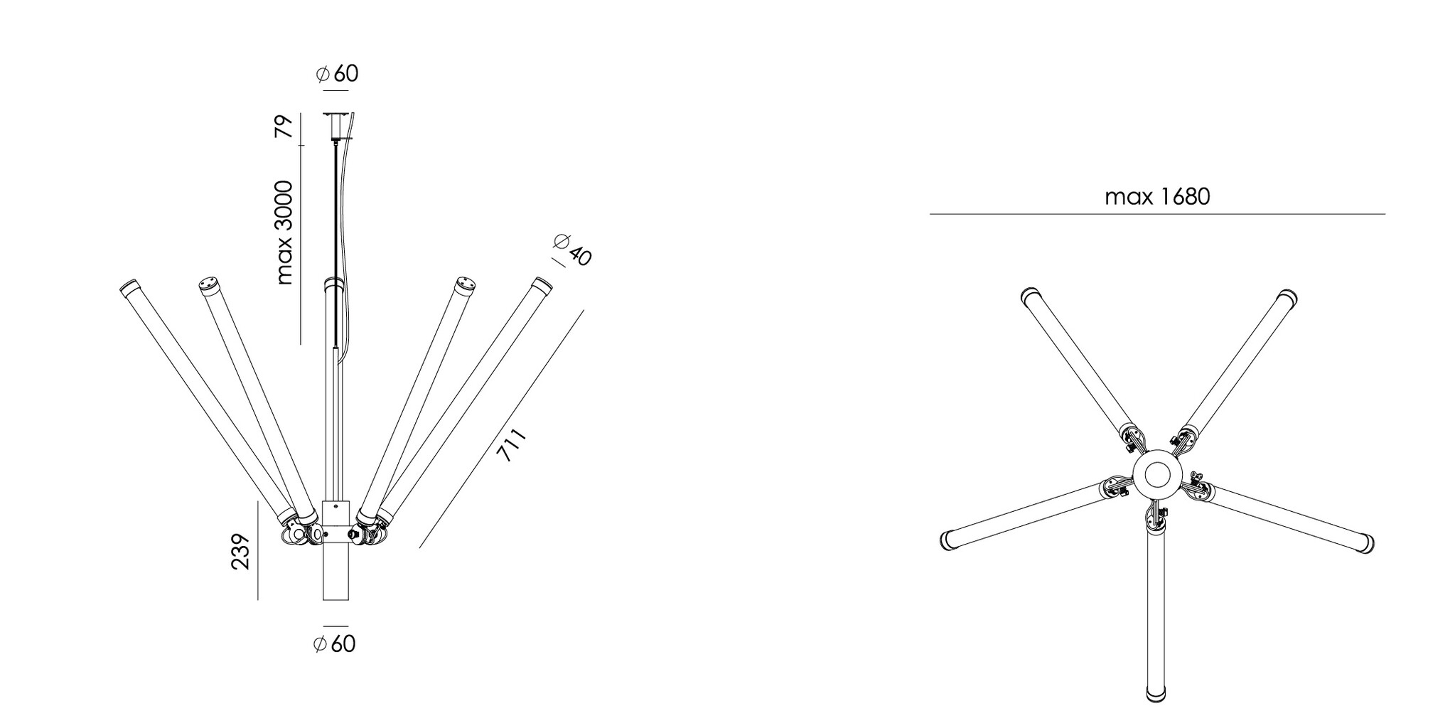 De lamp wordt geleverd inclusief vijf Led tubes, die speciaal ontwikkeld zijn door het Nederlandse bedrijf Tonone zelf. En deze zijn dimbaar met behulp van een externe dimmer.