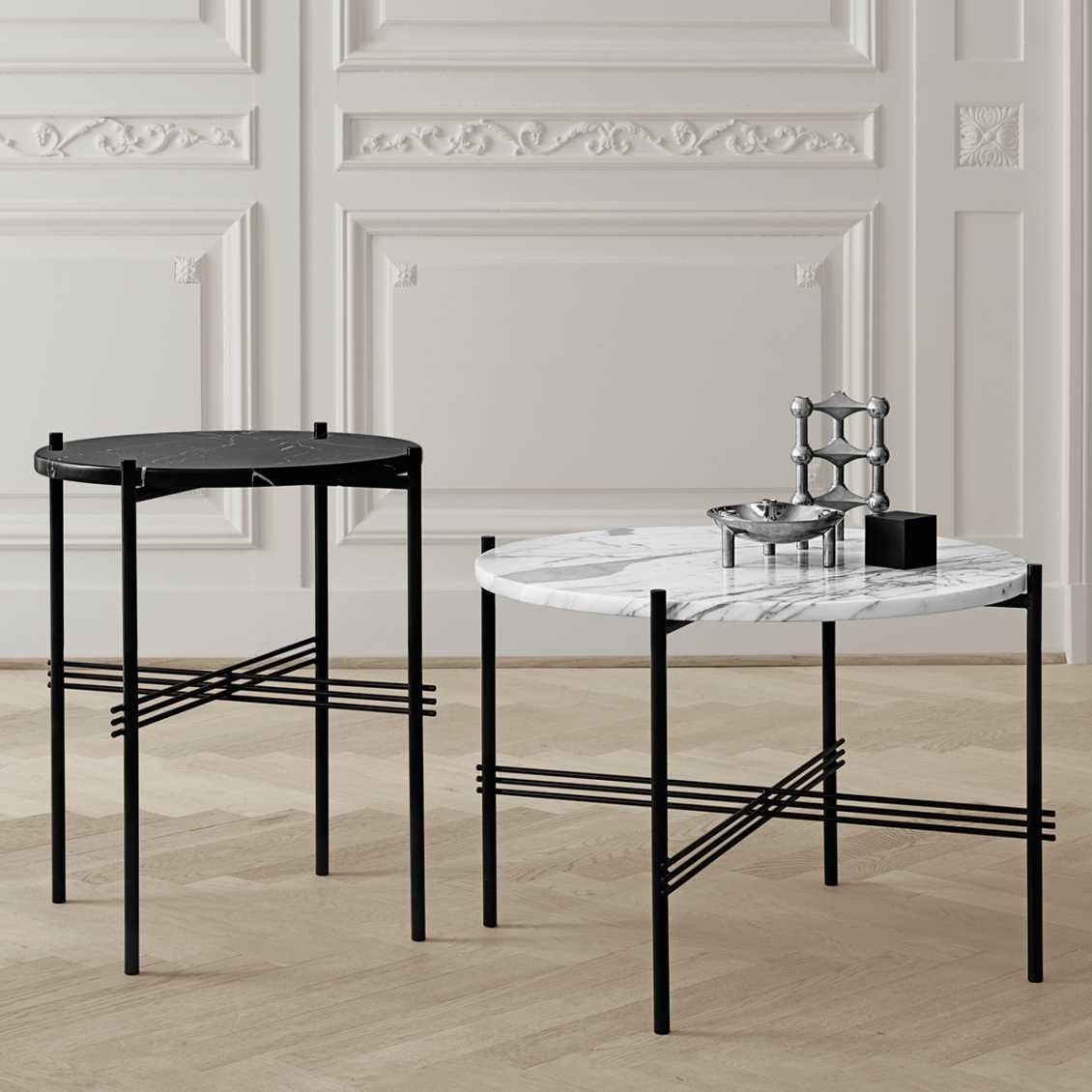 Het metalen onderstel kan in zwart en messing. In deze geweldige TS tafel collectie zit ook een medium en large versie.