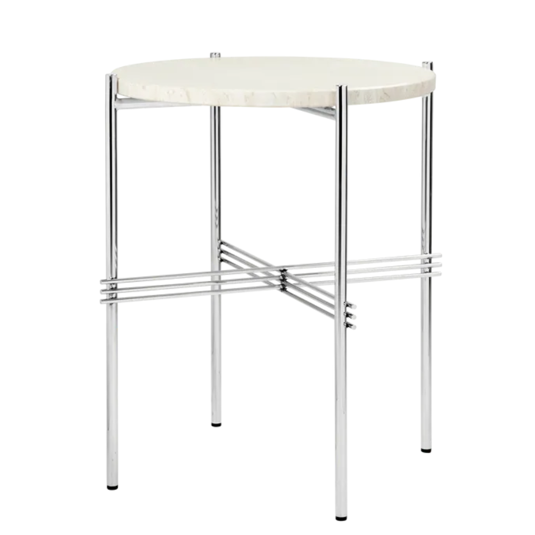 Gubi - TS bijzettafel rond neutral white travertine, gepolijst voet