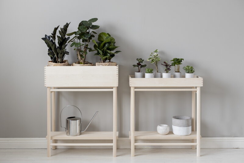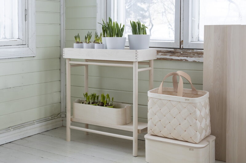 De side table genaamd Taimi Plant Tray van het Finse Verso Design creëert een karakteristieke opbergplaats voor kleine voorwerpen in elke kamer van uw huis. De Taimi-serie is gemaakt van berkenhout en is geschikt voor kamerplanten, objecten, boeken of als bijzettafel voor favoriete benodigdheden. De bodem van de bovenste tray is bedekt met donkergrijs wolvilt.