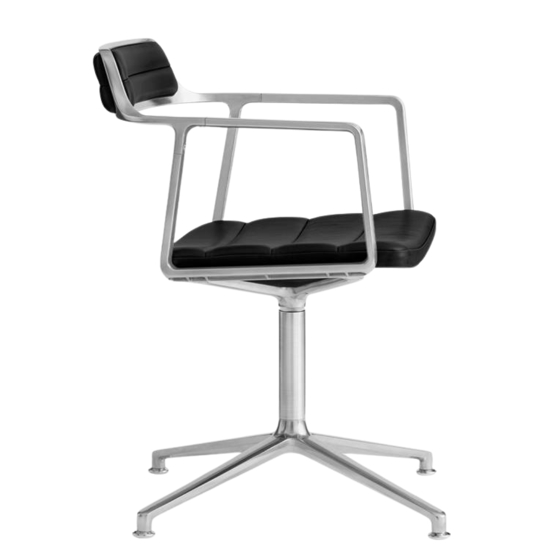De prachtige Vipp stoel is zowel geschikt voor aan uw eettafel of aan uw bureau voor de thuiswerker. De stoel heeft een aluminium frame met een gepolijst of mat zwart poeder gecoat afwerking, wat weer terug komt bij veel Vipp producten als vaste huisstijl. Het frame van de stoel heeft mooie afgeronde armleuningen en een compacte rugleuning waardoor deze stoel modern en industrieel aandoet.