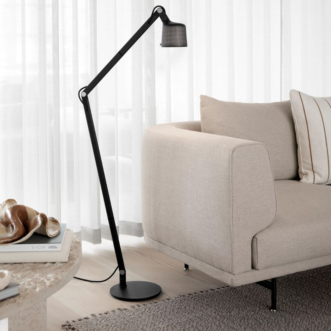 Deze kantelbare vloerlamp is perfect voor uw huis - bijv. als een leeslamp bij uw bank of fauteuil. De vloerlamp heeft een verstelbare arm zodat u het licht kunt richten waar deze nodig is. De geperforeerde lampenkap in gepoedercoat staal met de combinatie van matglas geeft een zachte diffuus licht.