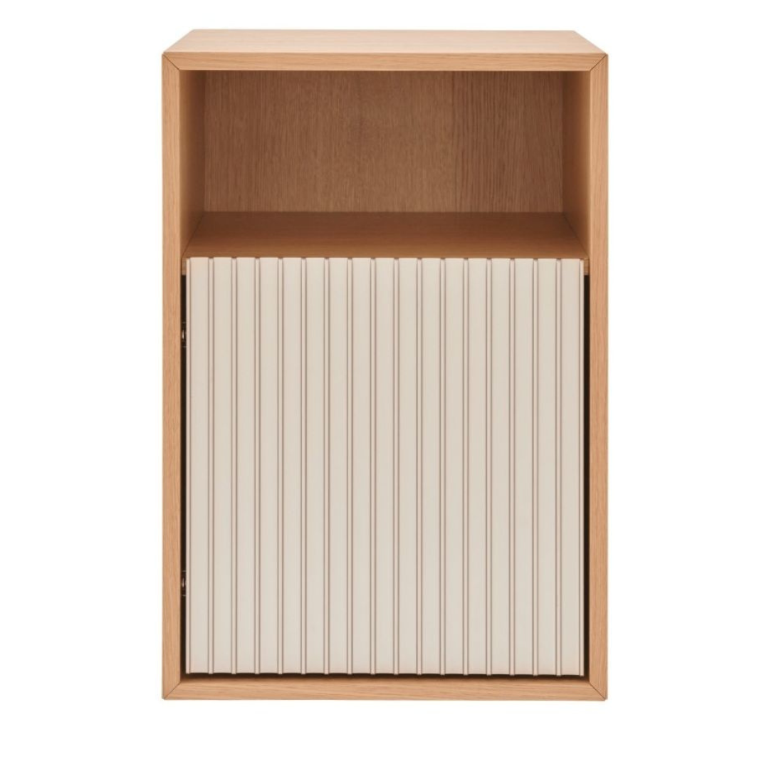 Dankzij de verstelbare poten staat het meubel altijd stabiel, ongeacht de ondergrond. Het zwevende blad geeft het geheel een lichte, bijna zwevende uitstraling, waardoor het nachtkastje subtiel aanwezig is zonder de ruimte te domineren.