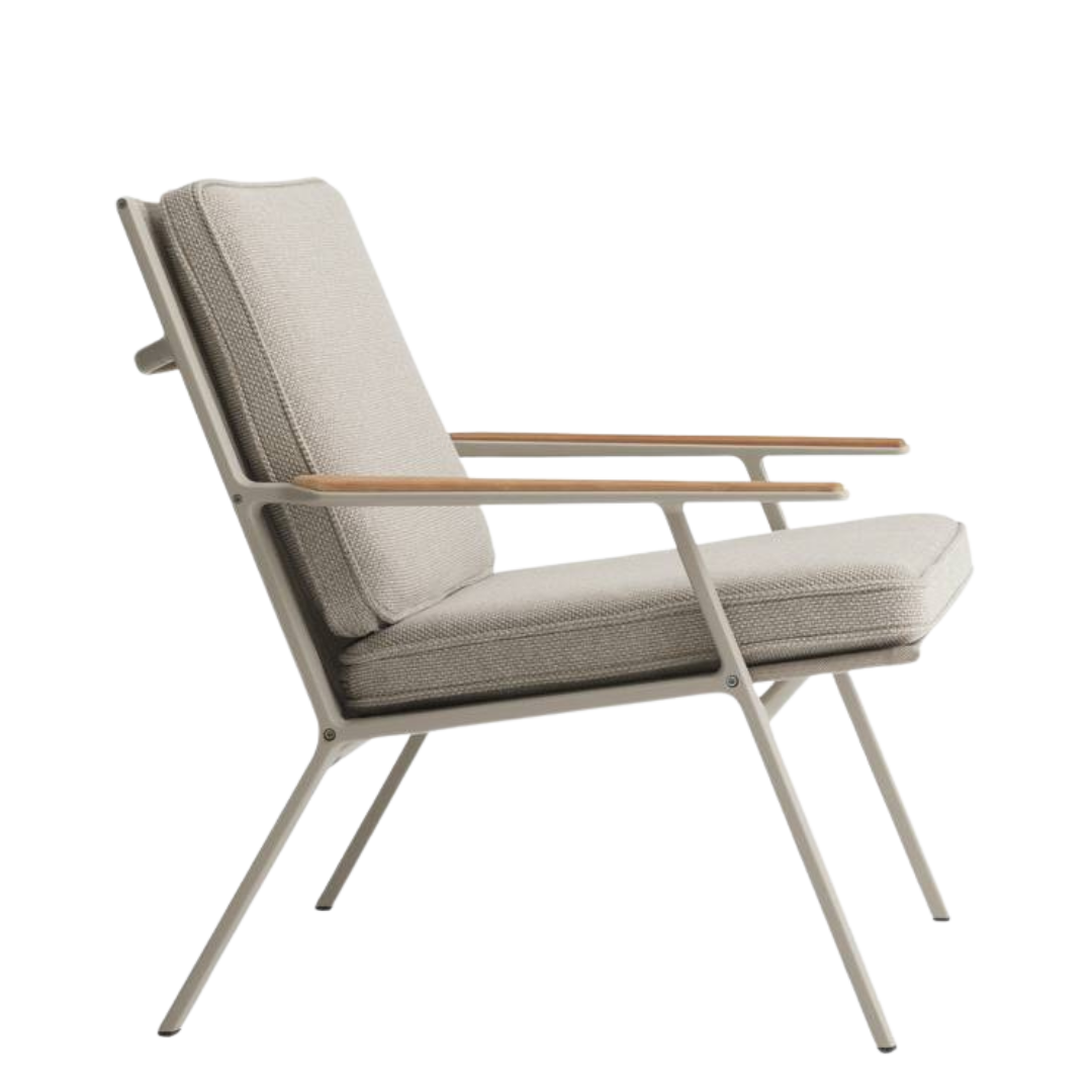 De kussens waaruit de Vipp 713 Outdoor Lounge Chair bestaat, bieden comfort en functionaliteit tegelijk; de kussens zijn bestand tegen alle weersomstandigheden, maar zijn gemakkelijk te verwijderen als u ze liever een tijdje binnen opbergt. De kussens zijn gemaakt van Dune stof in een warm grijs kleur uit Italië. Een two-tone stof die zorgt voor een levendig effect en vuil afstotend.