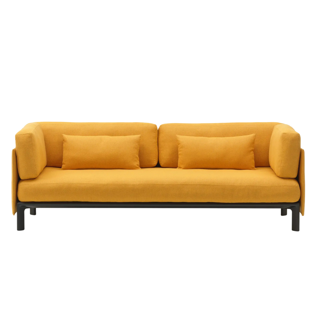 De kussens, die volledig gemaakt zijn van gerecyclede PET-vezels en geen dierlijke vulling bevatten, zorgen voor extra comfort. De stoffen hoezen zijn afneembaar en dus gemakkelijk schoon te maken en eventueel te vervangen. Het frame van de bank is gemaakt van robuust aluminium met 80% gerecycled materiaal en alle onderdelen zijn zo ontworpen dat ze aan het einde van hun levenscyclus gemakkelijk kunnen worden gescheiden en gerecycled - er is namelijk niets gelijmd of gelamineerd.