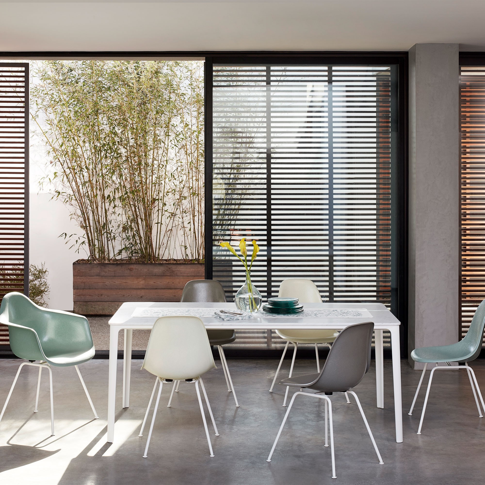 Vitra lanceerde de bijgewerkte versies van de Eames-stoelen op de meubelbeurs van Milaan. Omdat de gemiddelde menselijke lengte in de afgelopen 60 jaar met bijna 10 centimeter is toegenomen, achtte Vitra het nodig om de afmetingen van de klassieke stoelen te moderniseren. Afhankelijk van het model is de lengte van de poten met ongeveer 20 mm vergroot en is de geometrie van de zitting zorgvuldig aangepast. De veranderingen lijken minimaal, maar ze maken de Eames-stoelen aanzienlijk comfortabeler voor de behoeften van vandaag.