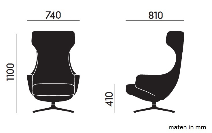bekleding: in Vitra Cosy (80% scheerwol, 20% polyamide), Vitra Dumet of Vitra Credo Cosy, Credo, Dumet, Leder, Natural Leder, Grand leder en Premium leder, alle in tal van kleuren.