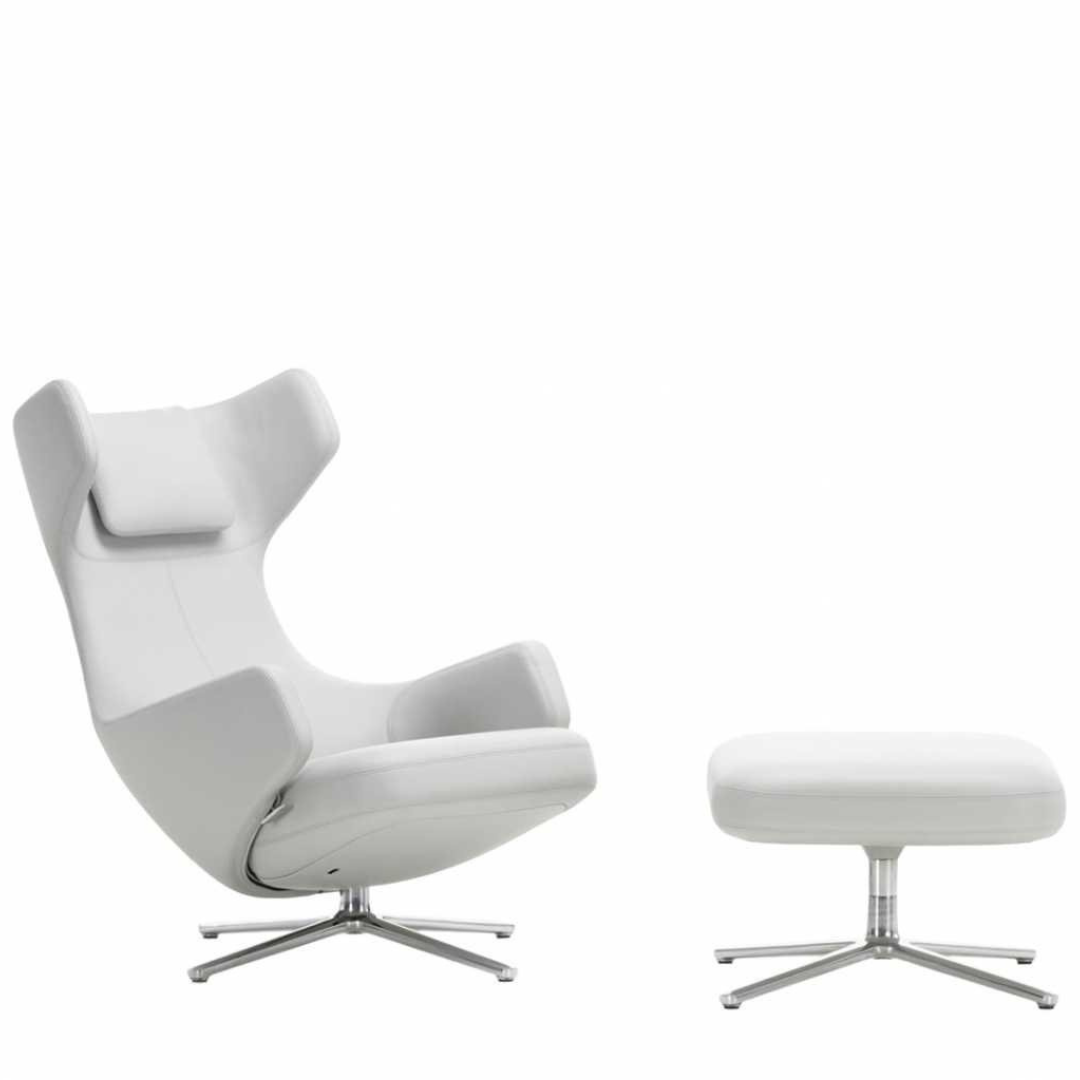 Vitra Grand Repos lounge stoel met ottoman, Premium leer Clay