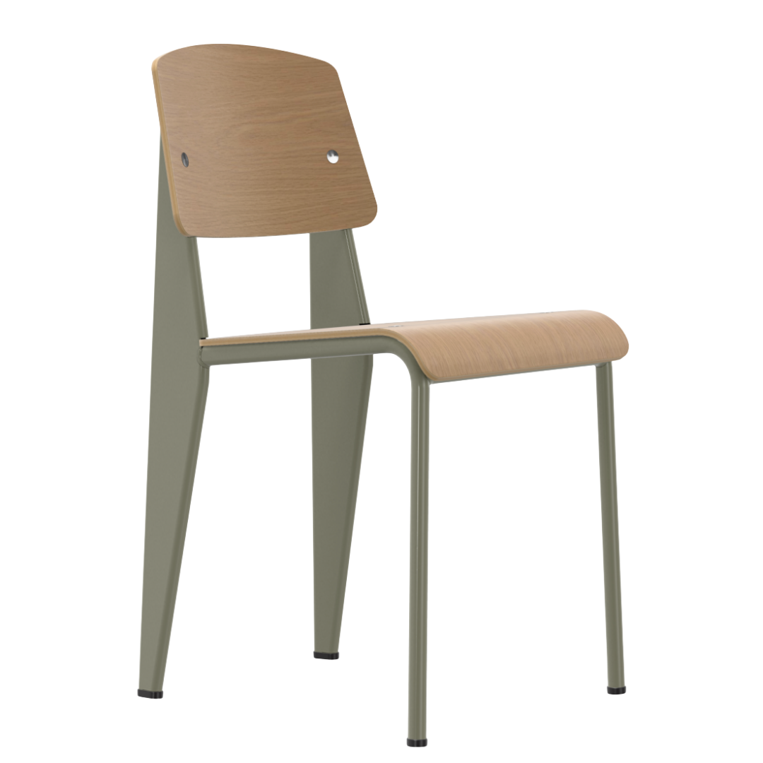 Met zijn aangenaam gevormde plywood zitting en rugleuning is de Standard Chair een uitstekende eetkamerstoel, en het ontwerp past naadloos bij de EM Table ontworpen door Prouvé.
